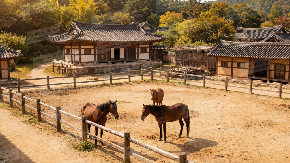 An AI-generated image of the view of the stables of the Joseon Dynasty.