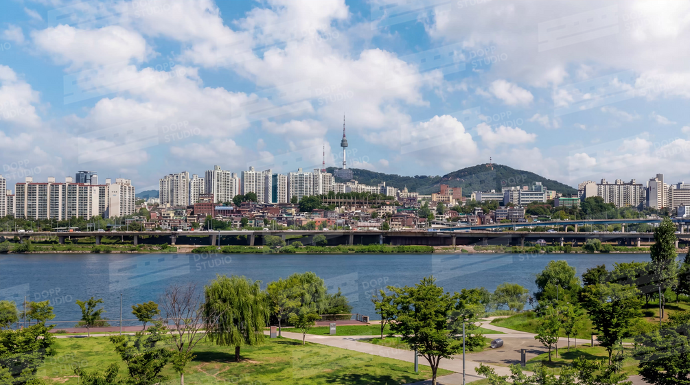 서울 한강과 도심 스카이라인 전경 / Seoul Han River city skyline view