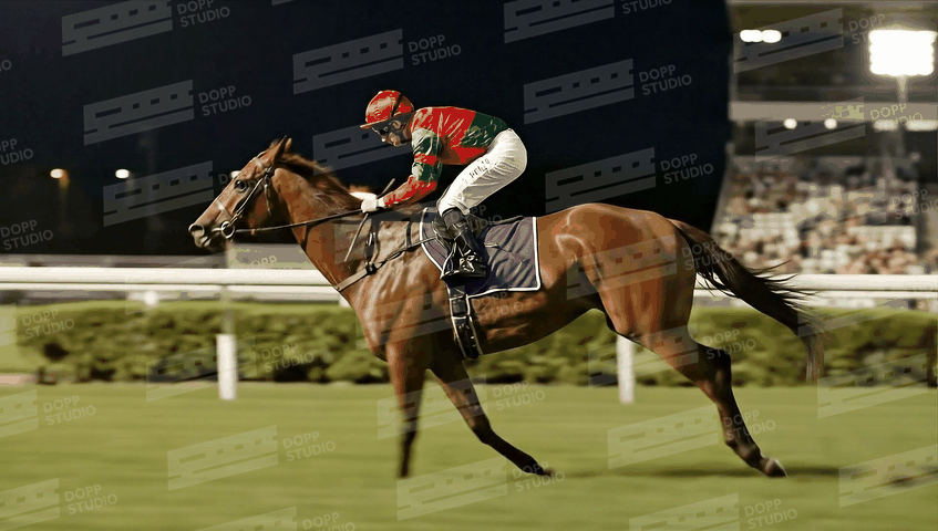 This is an AI-generated profile video of an equestrian athlete.